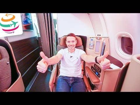 Die Etihad Business Class im Airbus A330-200 besteht aus 6 Reihen mit 1x2x1 Sitzen. Unser Flug geht von Rom nach Abu Dhabi und dauert etwa 5 Stunden.Groundservice