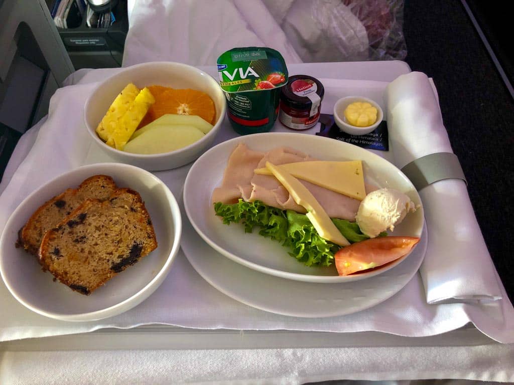 Modern ist die Ausreise in Barcelona gestaltet. Dank Fast Line geht es entsprechend fix durch die Sicherheitskontrolle. Anschließend ist zumindest für Biometrische Reisepässe die Ausreise automatisiert an Durchgangsterminals, ohne Personal. Am Flughafen Barcelona dürfen LATAM Business Class Gäste in die VIP Lounge Joan Miró. Diese liegt im Terminal 1 und ist für Non-Schengen-Reisende reserviert. Dort erwartet uns ein großes und reichhaltiges Angebot an Speisen zum Frühstück. Frisches Obst gehört genauso dazu wie eine Vielzahl an Kaffee- und Teespezialitäten. Ebenso alkoholfreie und alkoholische Getränke, welche stets nachgefüllt werden. Ergänzend zum üblichen Raumangebot steht ein Ruhebereich bereit. Sechs Couches mit gerader Liegefläche in einer privaten, aber offenen Konfiguration. Ideal zum Ausruhen, sollte es notwendig sein.